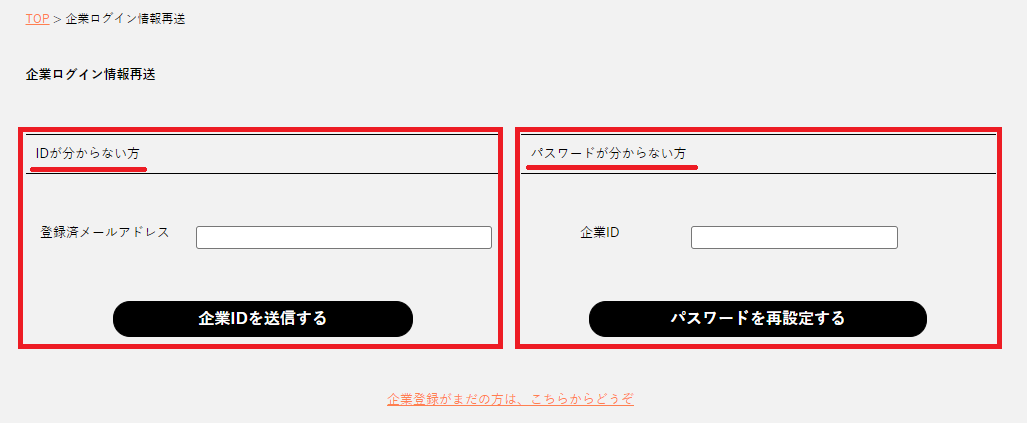 ID/PASSをお忘れの方より、IDの確認およびパスワードの再設定をお願いします。