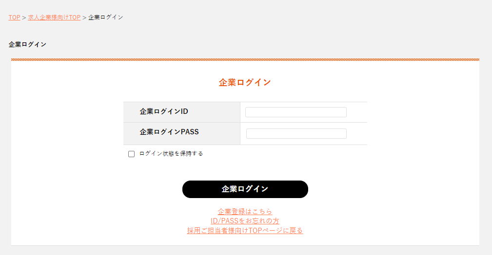 ③ 企業ログインIDと企業ログインPASSを入力し、「企業ログイン」ボタンをクリックします。