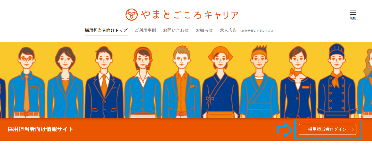 ② 画面右側にある「採用担当者ログイン」ボタンよりログインページにアクセスします。