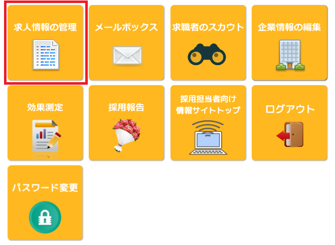「求人情報の管理」では、求人情報の掲載申込み、掲載内容の編集、掲載期間の変更、掲載終了などを行うことができます。