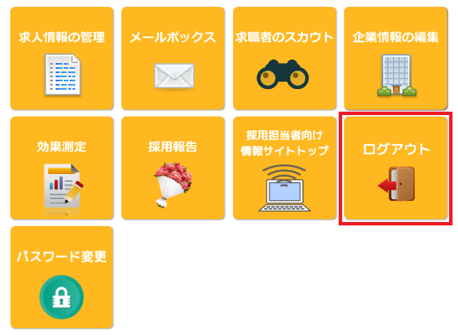 企業マイページトップの「ログアウト」をクリックすると、企業マイページからログアウトすることができます。