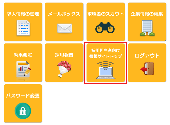 企業マイページトップの「採用担当者向け情報サイトトップ」をクリックすると、採用担当者向け情報サイトに遷移します。
