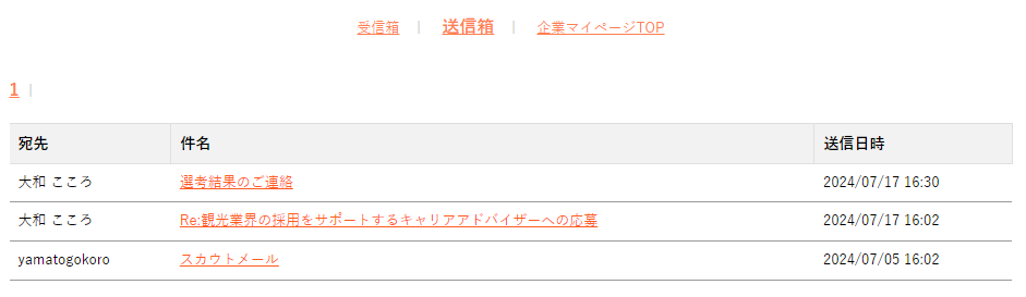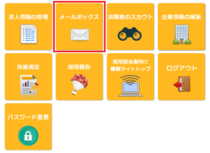「メールボックス」では、応募者とのメールの送受信、選考状況の管理などを行うことができます。
